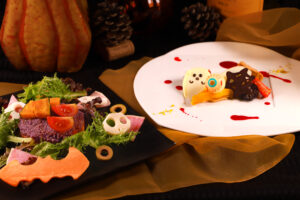 ハロウィンサラダ・選べるパスタ・選べるメイン・パン・ハロウィンデザート・珈琲